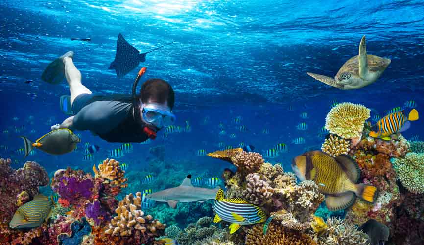Maldivas es uno de los mejores destinos del mundo para los amantes del buceo y el esnórquel, gracias a su vibrante vida marina.